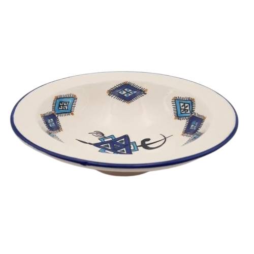 Ces superbes assiettes creuses traditionnelles Tebsi, ornées d’un décor délicatement peint à la main, apportent charme et convivialité à votre table. Idéales pour toutes les occasions, elles permettent de partager des moments festifs en famille ou entre amis. Polyvalentes, elles sont parfaites pour servir le couscous, la paëlla, les pâtes ou la soupe.