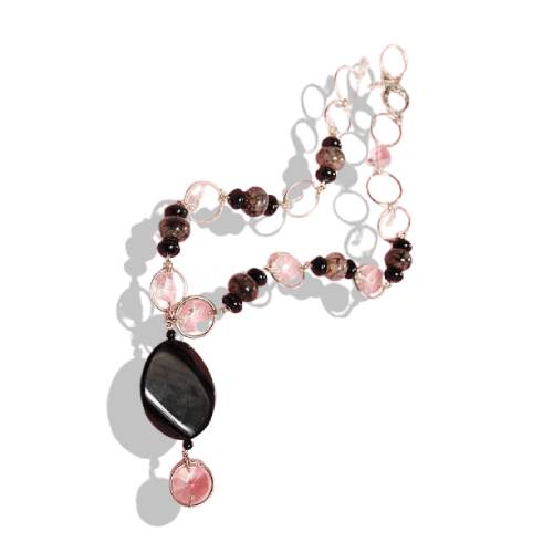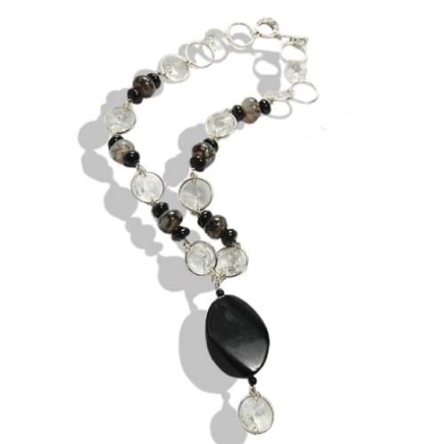 Collier élégant en perles et pierre noire