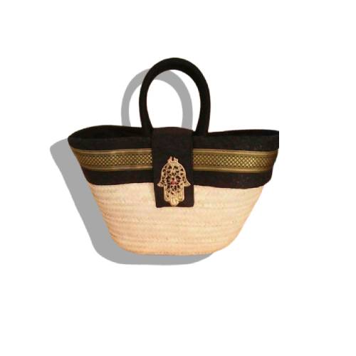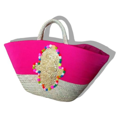 Chaque modèle est unique, avec des combinaisons de couleurs et de motifs qui varient, mais toujours rehaussés par l’emblématique Khomssa dorée gravée avec soin. Idéal pour vos sorties shopping, une journée à la plage, ou même comme élément décoratif pour votre intérieur.
