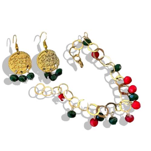 Apportez une touche d’élégance traditionnelle à vos tenues avec ce pack collier et boucles d’oreilles avec des anneaux et perles. Orné de pièces dorées gravées et de perles colorées (rouge et vert), ce bijou symbolise le riche patrimoine tunisien et l’artisanat fait main. Un choix parfait pour des occasions spéciales ou pour sublimer votre style quotidien.