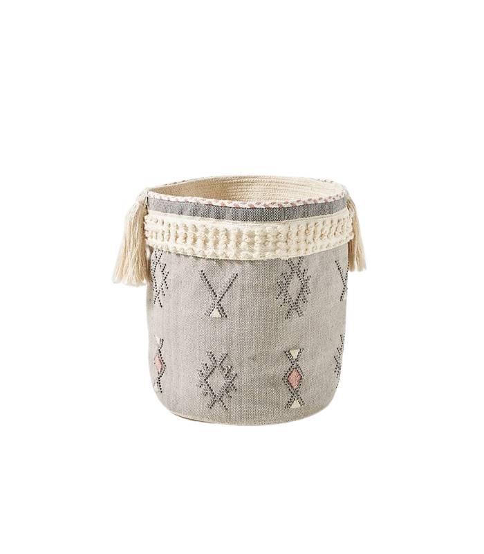 Ce magnifique panier de rangement tissé allie praticité et élégance, grâce à son design artisanal rehaussé par des motifs berbères traditionnels. Sa texture douce et ses finitions en franges apportent une touche bohème et chaleureuse à votre intérieur.